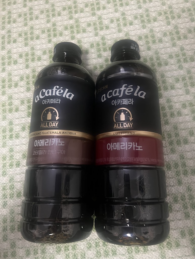 최근까지 일리 캡슐커피를 내려먹다가그냥 내려먹는게 귀찬아서제조된 커피를 사마시고 있는데 기존까지는 올 데이 아메리카노 오리지날을 먹었는데오리지날은 그냥 뭔가 쌩 커피 같은 느낌의 약간 밋밋한 커피 맛이다. 그래서 최근에 나온것 같은데 올 데이 아메리카노 과테말라가 있어서 구매해봤다. 용량은 1리터 라서 1통을 2일정도에 먹는것 같다.차량으로 업무상 이동이 많은데이동중에 커피사기도 귀찬은것도 있고페트병에 커피가 들어있어서 덜어서 먹기가 편하다.왼쪽이 과테말라, 오른쪽이 오리지날이다. 단백질이 더 적고 지방이 더 많아서칼로리가 과테말라가 3Kcal 더 적다. 실제 색상도 왼쪽의 과테말라가 약간 더 검다.그래서 그런지 과테말라가 더 탄맛이 난다. 그냥 오리지날은 뭔가 밋밋한 커피맛과테말라는 좀 더 진한 룽고..